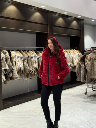 Hooded Bomber Mink Fur Jacket - Maroon