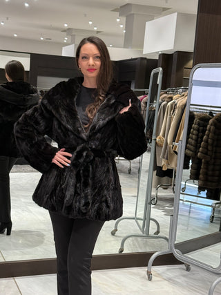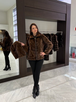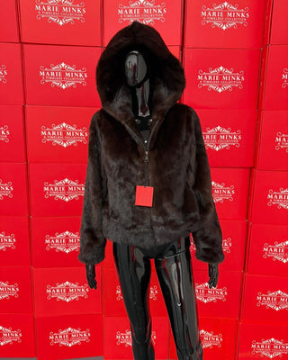 Hooded Bomber Mink Fur Jacket - Brown