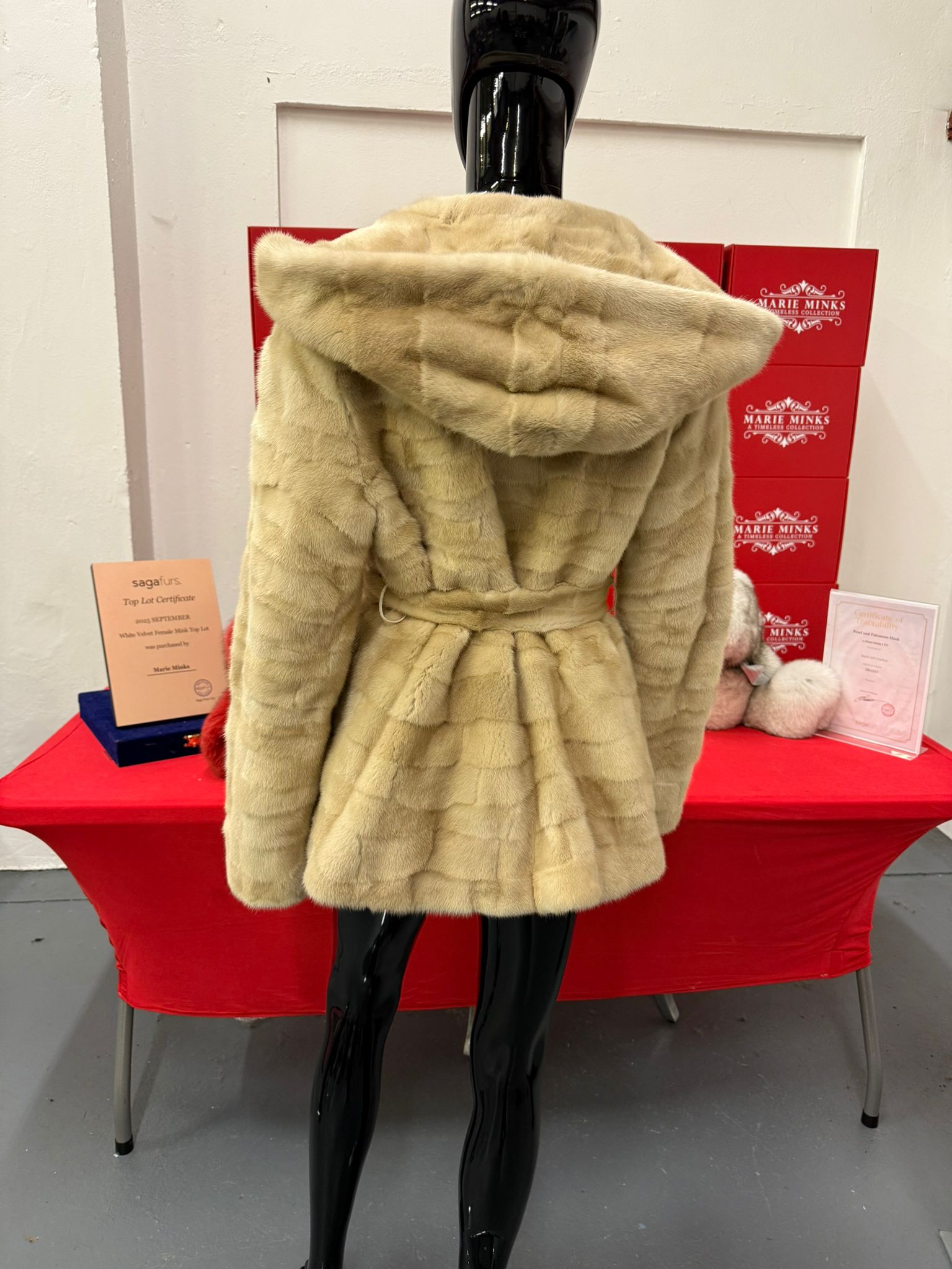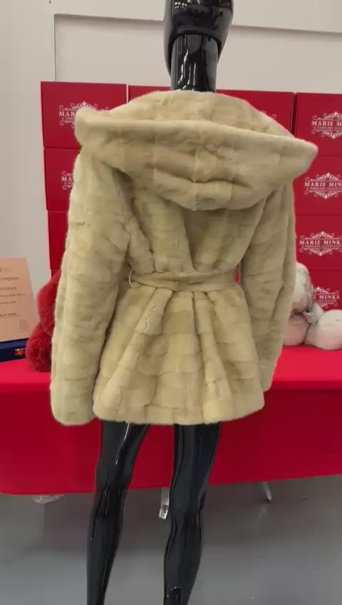 Expertly crafted from luxurious pattern mink in a beautiful beige hue, the Bella Coat is the ultimate addition to your wardrobe. With its timeless design, this coat exudes sophistication and elegance, making it the perfect choice for any occasion. Don't miss out on the absolute bargain that is the Bella Coat.